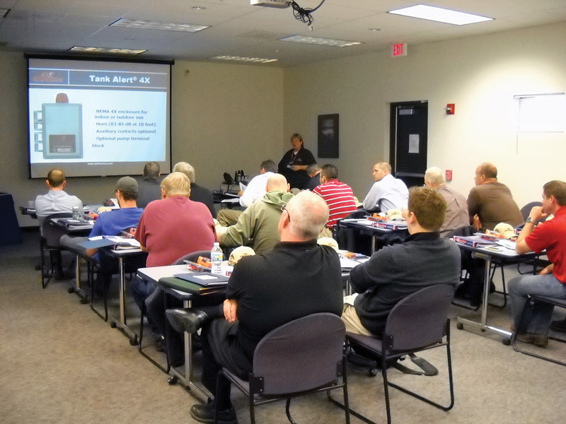 SJE-Rhombus held a training session for 16 attendees representing distributors, installers and manufacturers at its headquarters in Detroit Lakes, Minn. The course included a float/alarm overview, basic electrical theory with multi-meters, component overview, control panel overview and configuration, hands-on control panel assembly, operation and troubleshooting, best installation practices and a tour of the facility.