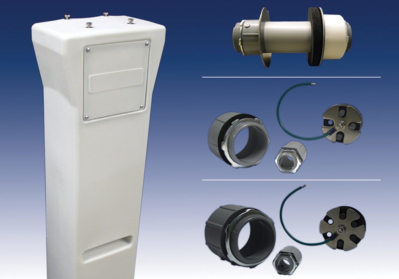 The panel-mounting post and three accessory kits from SJE-Rhombus are designed to improve control panel installation. The polyethylene post can accommodate control panel enclosures with a minimum depth of 6 inches and overall dimensions of 14 by 12 by 6 inches. It includes four stainless steel mounting bolts with gaskets and drilling template. The post can be mounted into the ground or over a 4- by 4-inch post or conduit. The riser mounting kit includes 2-inch hub assembly, 2- by 6-inch PVC pipe, connecting hardware and conduit. The simplex and duplex kits provide weatherproof installation. 888/342-5753; www.sjerhombus.com.