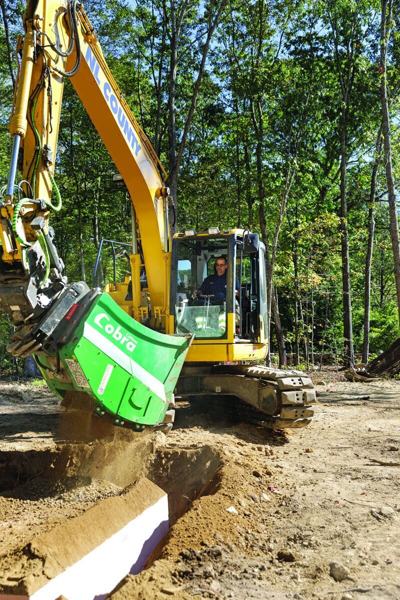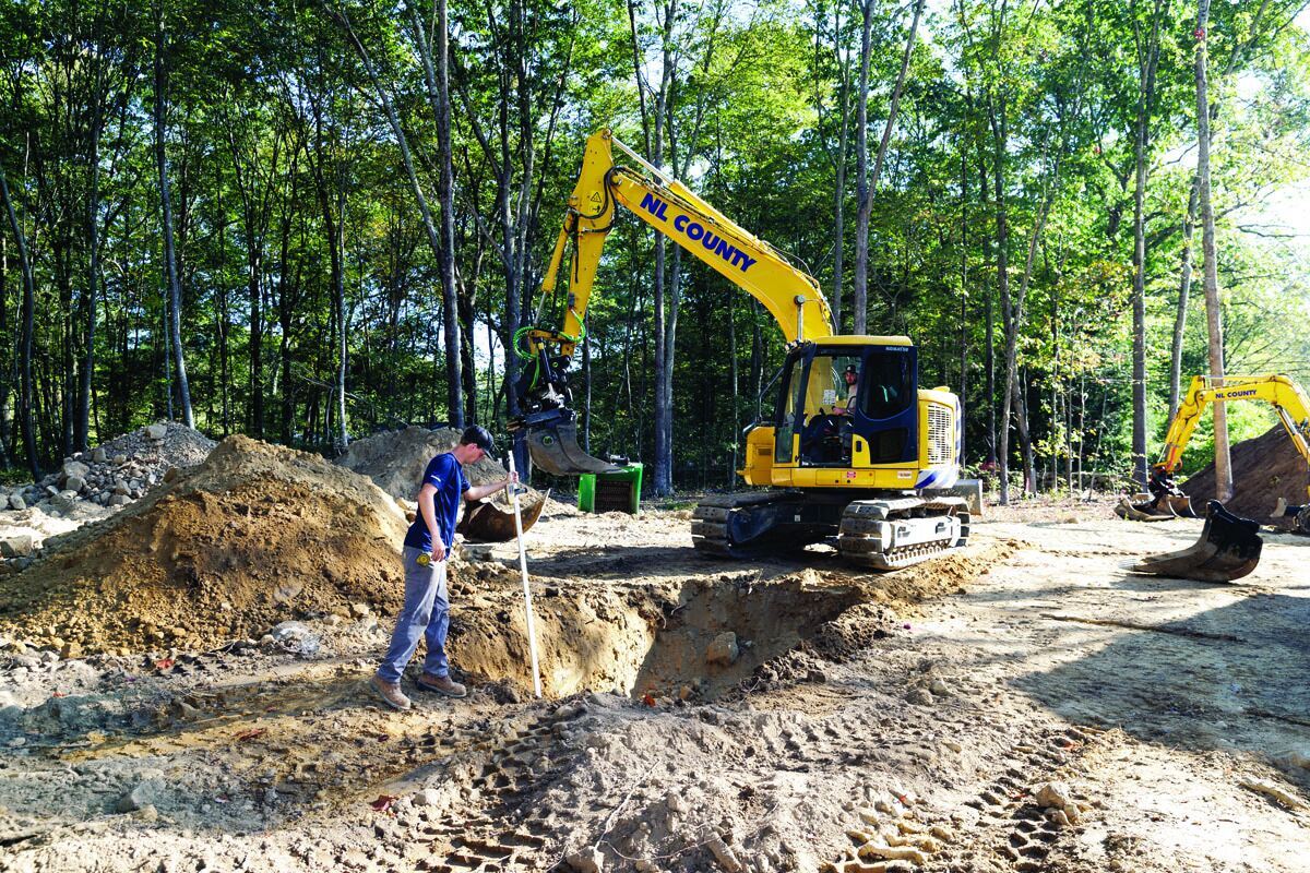 “We don’t really have clay soils here. We have some poor-draining soil, but people who come here are surprised at the amount of rocks. There are ledge outcroppings and high groundwater tables. We sometimes find boulders three or four yards in size. We have to hammer them, split them, move them out of the way or sometimes move the septic system.”