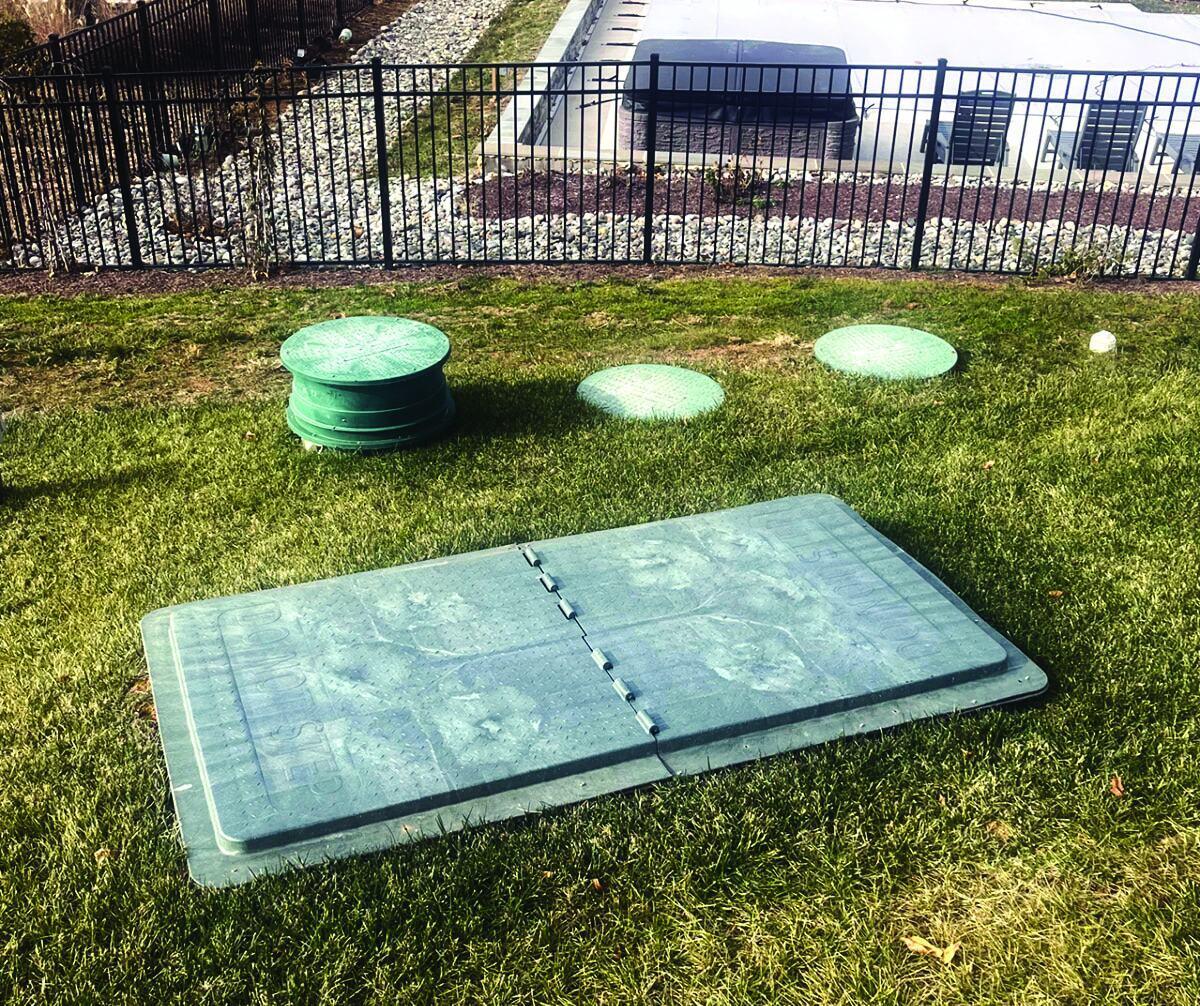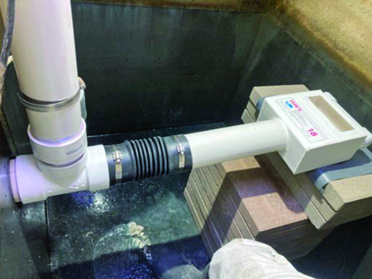 Solution: Tom Basham at Nokesville Design designed an EZ Treat Model 600 unit with a Model #102 UV Unit to bring the discharge system into compliance with the Virginia Sewage Handling and Disposal Regulations and the DEQ. The existing septic tank and ATU was pumped and abandoned in place. The new design will consist of a Hanover Precast 1,500-gallon baffled septic/recirculation tank, an EZ Treat Model 600 treatment unit and an EZ Treat Model #102 UV unit for disinfection and a Hanover Precast 2,000-gallon pump chamber. This plan was designed to meet the Class I reliability standards. Accordingly, the pump chamber had storage capacity of more than 100% of the forward flow above the alarm float. A Fralo monster box with an aeration stone was installed prior to the discharge point. The unit is designed and approved to treat hydraulic flows up to 600 gpd, producing advanced, secondary quality of treated effluent and is a Generally Approved TL-3 (Treatment Level) system in Virginia. In Virginia, TL-3 effluent requirements mandate the treated effluent to have a five-day BOD and TSS of 10 mg/L or less. The Model #102 UV unit is a gravity-fed, dual-bulb device capable of treating a maximum flow rate of 10 gpm.