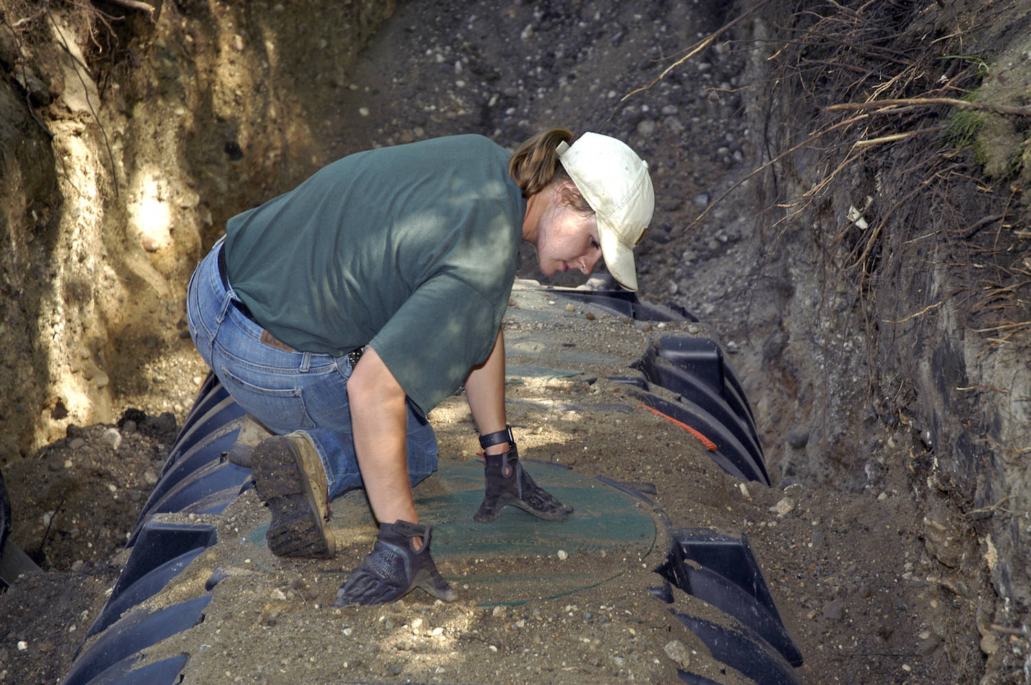 She is now certified as an onsite system installer, designer, inspector and maintainer. “She runs the equipment, the backhoe, the skids, she’s right there in the trenches,” says her father. “She does it all.”