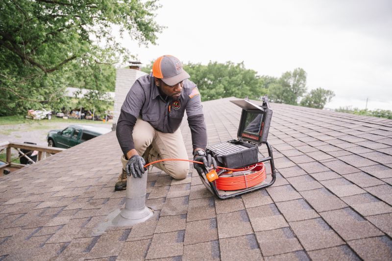 Curtis Ball of JT Services uses a sewer camera to start an inspection through a stack.
