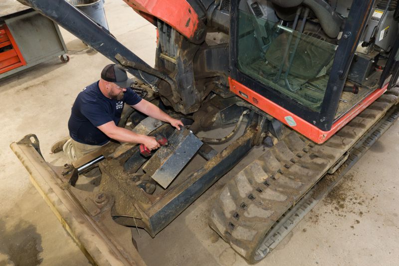 A&A Construction and Septic shop manager Glenn Davis performs maintenance on a Kubota excavator.